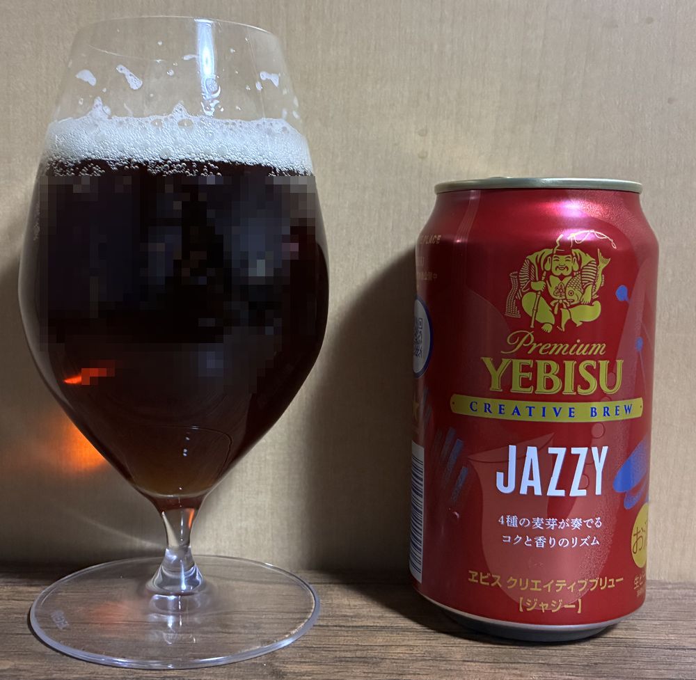 こんにちは。サッポロのエビスクリエイトブリュー JAZZYを飲みました。エビスの期間限定シリーズであるクリエイトブリュー。今回のJAZZYは4種のモルトを使用したカルテットモルティング製法だそうですが、公式サイトの写真を見る限り普段のビールにチョコレートモルトを足しただけでしょう。香ばしさと麦味が濃くなったエビスのように思えますが果たして…