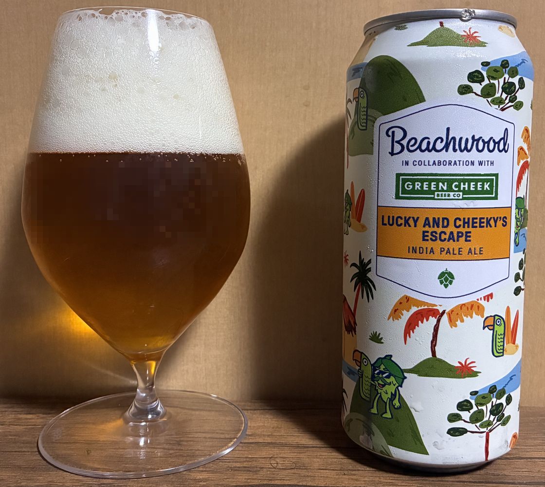 こんにちは。Beachwood x Green CheekのLucky&Cheeky’s Escapeを飲みました。こちらのビール実はもう飲んでいます。知り合いと旅行に行った時にたまたま出会ったのですが、当時は酔っぱらっており詳細な味は覚えていないのです。メモに書いてあった「やたらと美味い」の正体を確かめにいきましょう。
